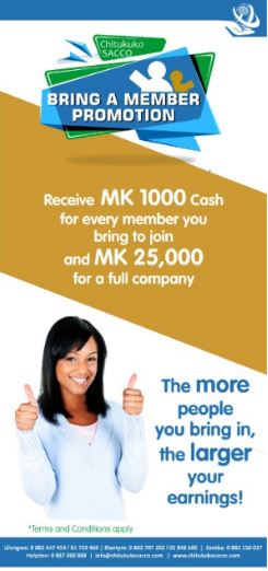 Get MK1, 500 for every member that you bring to the sacco. If you bring a full company earn MK25,000